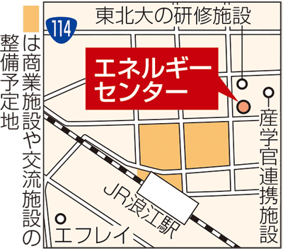 センターは、産学官連携施設と東北大の研修施設の隣接地に建設される予定。町は当初、駅周辺整備事業に関する基本計画で、水素燃料電池などを施設ごとに分散配置する計画だった。しかし、効率的な電力供給を実現させるために拠点を設けて集約することにした。駅前周辺の施設整備を巡っては、公営住宅が27年12月、交流施設や商業施設、地域活性化施設は28年3月の完成予定となっている。