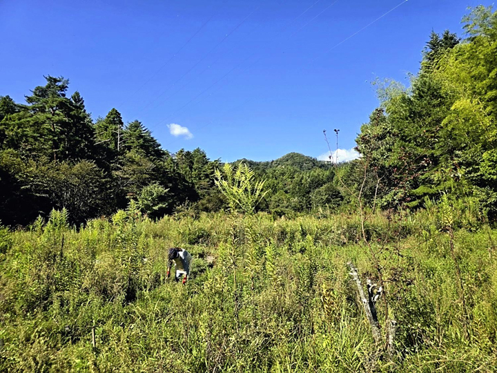 去年と同じように、農園で苗を探す時期が始まりました。と言っても、今年は夏草より植えた苗のほうが伸びているので、すぐに見つかります。1年目とだいぶ状況が変わりましたね。