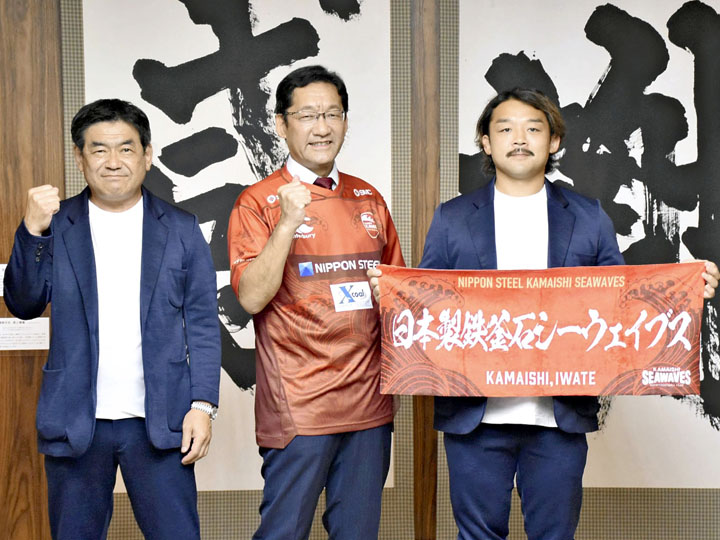 ラグビーのリーグワン2部に所属する日本製鉄釜石シーウェイブスの小野航大選手(磐城高卒)らが7日、いわき市役所に内田広之市長を訪ね、12月27日に同市のハワイアンズスタジアムいわきで行われる公式戦の開催を報告した。