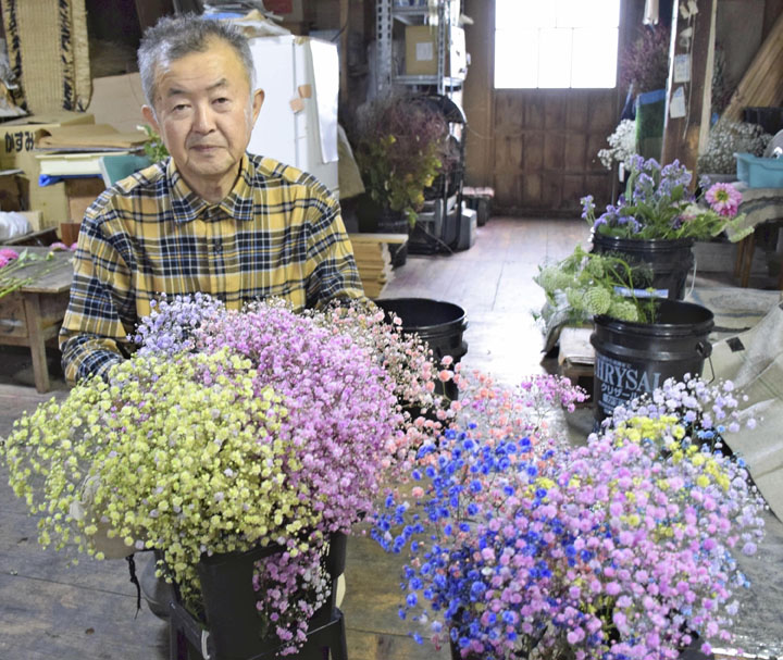 夏秋期になると、各地のスーパーや道の駅などの店頭にはピンクや青、黄色などの色鮮やかな「染めかすみ草」が並ぶ。昭和村の生産者が全国に先駆けて出荷した。当初は「邪道だ」と批判された染めかすみ草だが、消費者の評判は良く、すぐに受け入れられた。 流通のきっかけは当時、無印良品の子会社だった「花良品」の阿部憲資(けんすけ)社長との出会いだ。鮮度保持の後、私は商品価値を高める方策を考えていた。その頃、阿部社...