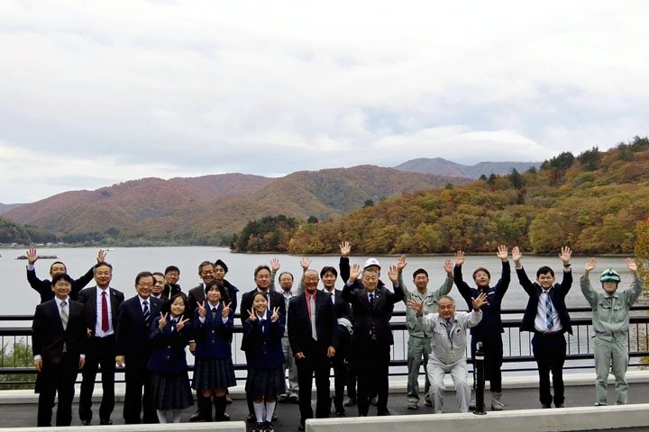 完成式では杉原雅人喜多方建設事務所長が「橋の完成で観光振興に期待がかかる」とあいさつ。遠藤和夫村長は「観光客にも地域住民にも重要な道路だ。地域経済の活性化が期待される」と祝辞を述べた。橋名板の文字を書いた裏磐梯中の生徒に記念品が贈られた。