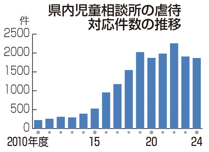 県は7日、2024年度に県内の4児童相談所が受けた児童虐待に関する相談や対応件数が前年度を40件下回る1868件だったと発表した。県は引き続き高い水準にあるとし、早期発見や児童への支援体制の強化などに継続して取り組む方針だ。