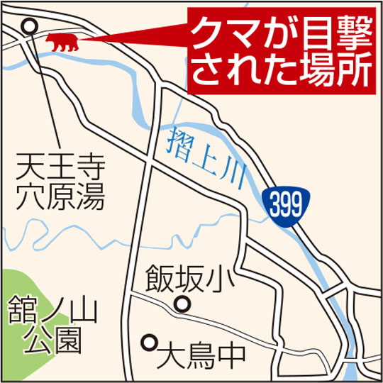 11日午前8時10分ごろ、福島市飯坂町湯野字湯尻のリンゴ畑でクマを目撃したと、車で通った40代男性から福島北署に通報があった。