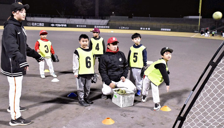 開成山クロスフィールド郡山は14日、郡山市のヨーク開成スタジアムで開成山野球教室を開いた。参加した小学生が少年野球スクール「BAFジャイアンツアカデミー」のコーチらの指導を受けながら、野球の技術を身に付けた。