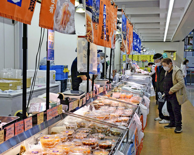 第11回北海道の観光と物産展が19日、福島空港で開幕した。新鮮な海産物のほか、スイーツやザンギなど北海道グルメを集めた。