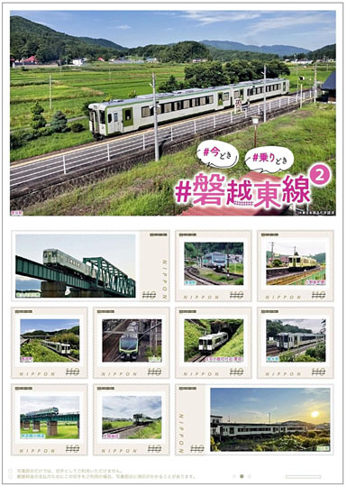第2弾の切手シートにはイベント列車「SATONO(さとの)」などの車両とともに、今夏に撮影された沿線の風景が収められている。斎藤局長は「地域と観光振興に貢献するための企画で、今回が2回目。実際に来て、見て、沿線地域を知ってほしい」と話した。