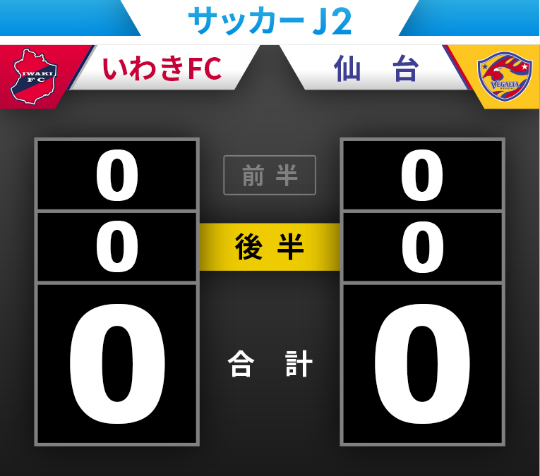 サッカーJ2いわきFC-ベガルタ仙台の試合スコアを速報します。