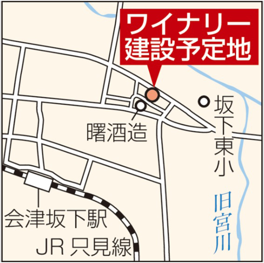 会津坂下の魅力を広く発信したい―。創業120年の歴史を持つ曙酒造(会津坂下町)は、町内の敷地にワイナリーの建設を進めている。福島県内の蔵元として初のワイン造りへの挑戦となる。来年7月の開業を目指しており、自社製品販売所やサウナも併設する計画。伝統の酒造りに加えてワインを新たな名産とし、長時間滞在できる施設で会津坂下に観光客を呼び込む。