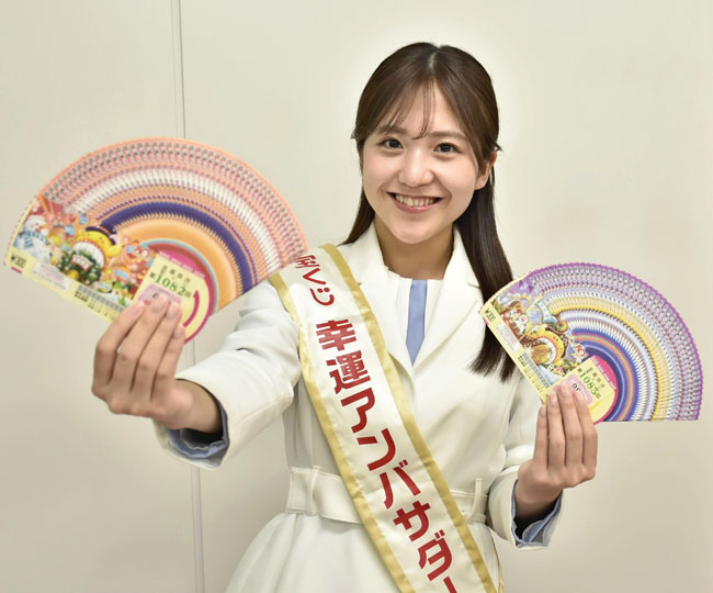 宝くじ幸運アンバサダーの並川佳都(けいと)さん(25)=大阪府=は1日、福島市の福島民友新聞社を訪れ、販売中の「年末ジャンボ宝くじ」と「年末ジャンボミニ」をPRした。販売は23日まで。