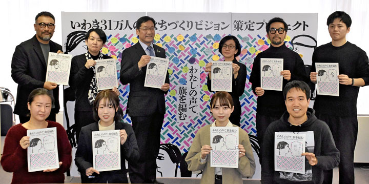 ビジョンは100年目のいわきを見据えた「未来ビジョン」。ビジョンを旗に見立て、市民一人一人の声が旗を編み込むための糸になる、との思いから通称を決めた。市は今後、同市出身の若者や移住者らで組織したビジョン検討メンバーと共に学校や企業などを訪れて声集めを行う。アンケートや意見交換に協力してくれる企業・団体も募集するという。