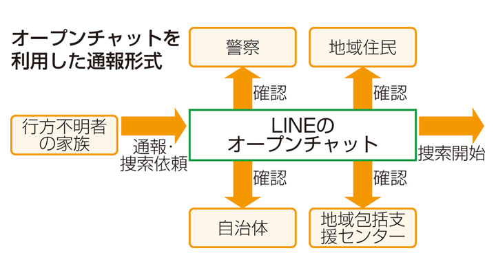 認知症による行方不明者の捜索にLINE(ライン)のオープンチャットを活用する先駆的な取り組みが進んでいる。福島大の提案する枠組みで、行方不明者が出た際に住民や警察、自治体職員が参加するチャットで情報を一斉に共有し、早期発見につなげる。 「石合町内会で住民が行方不明となり、家族から緊急捜索の協力依頼が出されました」。福島市松川町石合で10月下旬、オープンチャットを活用した行方不明者捜索の捜索訓...