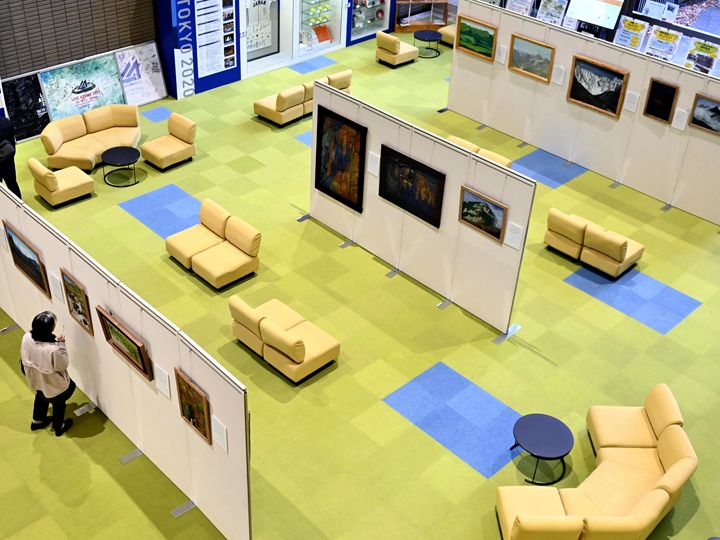 1回目の事業として、郡山市の佐藤健二さんによる山岳風景画の展示会「登山ガイドが描く山岳風景画展~山へのいざない~」が開かれている。14日まで。