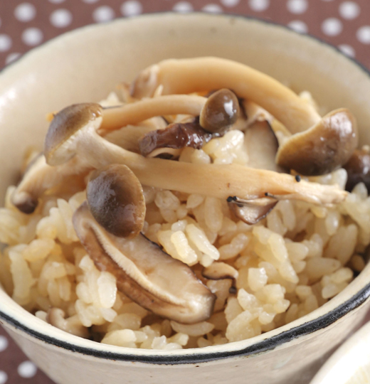 1人分207キロカロリー、塩分1.0グラム (1)2人分でシイタケ2枚、シメジ50グラム、エリンギ1/2本、米120cc、A(水120cc、和風だしのもととみりん、酒、しょうゆ各小さじ1/2、塩少々)を用意します。 (2)シイタケはかさと軸に分けて薄切りにし、シメジは小房に分けます。エリンギは半分の長さに切り、食べやすい大きさに割きます。キノコにしょうゆ小さじ1/2を回しかけます。米は洗って3...