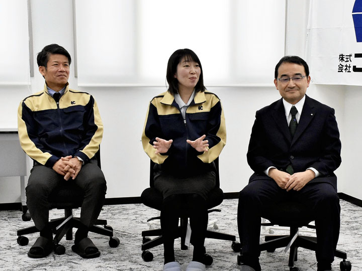内堀雅雄知事は4日、社員の育児参加に先進的に取り組む企業の事例を学び、発信する「ふくしまイクボス対話」として、リサイクル業などを手がける、こんの(福島市)を訪ね、紺野道昭社長や子育て中の社員と対談した。 紺野社長と斎藤一茂業務課長、グループ企業アイクリーンの日下部侑子事務主任が参加した。 両社は社員の子育てを後押しし、仕事より子どもの学校行事への参加を優先させたり、PTA活動を会社の研修...