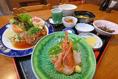 小鉢や茶わん蒸し、サラダなどが付いてボリューム満点の「おまかせランチ」。使う野菜は極力地元産を選んでいる