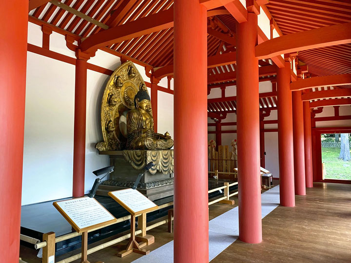 慧日寺跡 平安時代の807年、「仏都会津」の礎を築いた高僧徳一が創建した。中心建物の金堂には薬師如来像が安置されていたが、明治時代前期に火災で焼失したとされる。1970年に国史跡に指定され、磐梯町が史跡の保存や復元などを進めてきた。本尊の薬師如来が祭られていた金堂を2008年、中門を09年に復元。18年には東京芸大の協力を得て本尊「薬師如来坐像」を展示物として復元した。