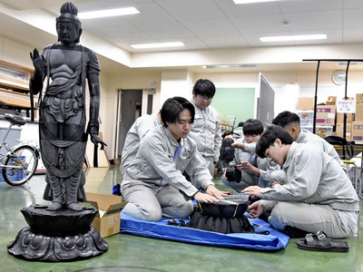 まずは月光菩薩像を本年度に完成させ、来年度は日光菩薩像の制作に移る予定だ。現在は樹脂製の仏像を組み立てたり、地元企業の協力を得て表面の質感を詰めたりしている。放課後も集まり、横山さんは「とにかく必死。(データの)出力はもちろん、組み立てにも時間がかかるので大変。仏像の腕や体の厚みの再現にこだわっている」と話す。