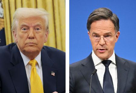 トランプ米大統領、NATOのルッテ事務総長(いずれもゲッティ=共同)