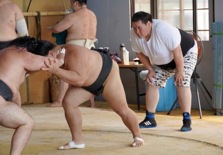 大相撲の元横綱照ノ富士が新たに師匠となった伊勢ケ浜部屋の稽古が18日、合宿地の堺市で公開された。今年初場所途中で引退して部屋付き親方となり、今月9日付で継承した伊勢ケ浜親方は真剣なまなざしで身ぶり手ぶりを交えて指導。「これだけの部屋を継いだ。これ以上に発展させていかないといけない」と意気込んだ。
