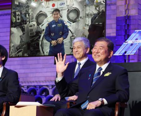 石破茂首相は30日夜、国際宇宙ステーション(ISS)に滞在中の宇宙飛行士大西卓哉さんと交信した。公邸のホールとISSにある日本の実験棟「きぼう」をオンラインでつなぎ「ISSでの成果を最大化し、知見を継承することが重要だ。米国を含む関係各国と連携し、宇宙開発を強力に推進する」と述べた。