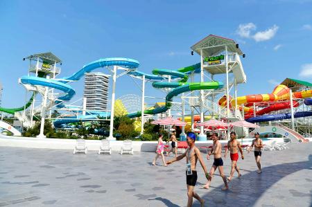 平壌から訪れた市民らはウオータースライダーがあるプールで遊び、海でボートに乗ったり浜辺で記念撮影をしたりしていた。周辺は夜間も明かりが煌々と照らされていた。