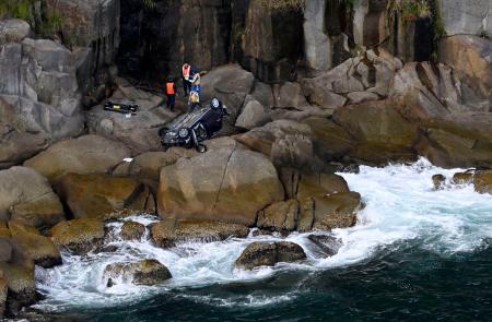 熊野署が事故の詳しい原因を調べている。現場付近にはガードレールがなかったという。
