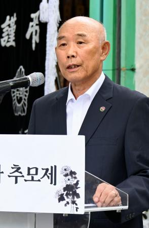 【陜川共同】広島への米軍の原爆投下から80年となった6日、韓国人被爆者が多く暮らす韓国南東部・陜川で原爆犠牲者の慰霊式が開かれた。植民地支配下、陜川から多くの人々が広島へ渡り、日本の敗戦後に帰郷した。