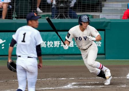 東洋大姫路が終盤まで競り合った試合をものにした。3―3の七回、1死二塁で高畑が左中間へ勝ち越し二塁打。白鳥が左前適時打で続いて差を広げた。木下は終盤まで球速が落ちず、丁寧な投球を続けて7安打3失点で完投した。