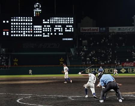「原則として午後10時を過ぎて新たなイニングに入らない」としている今大会。高知中央―綾羽は2―2の九回を終えて10時を過ぎていたが十回に入り、試合を完了した。