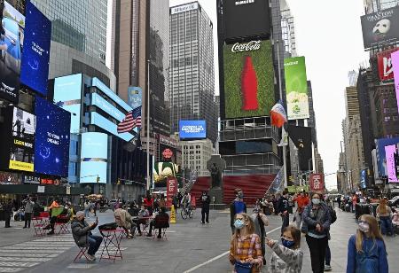 【ニューヨーク共同】米メディアによると、ニューヨークの繁華街タイムズスクエアで9日午前1時20分(日本時間同日午後2時20分)ごろ、銃撃事件が発生し、18~65歳の男女3人が負傷した。警察が17歳の容疑者を拘束して事情聴取し、事件の状況を調べている。