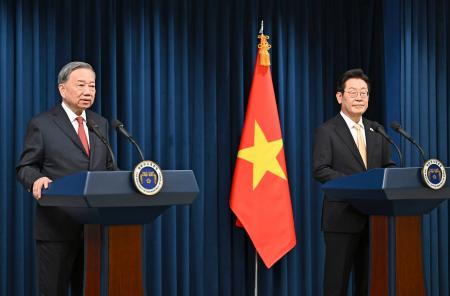 【ソウル共同】韓国の李在明大統領とベトナム最高指導者トー・ラム共産党書記長が11日、ソウルで会談した。6月の李政権発足後、最初の外国首脳の訪韓。韓国側の発表によると外交や安全保障面のほか、ベトナムでの原発や高速鉄道の建設に関する協力を確認した。貿易や人的交流も拡大させるとした。