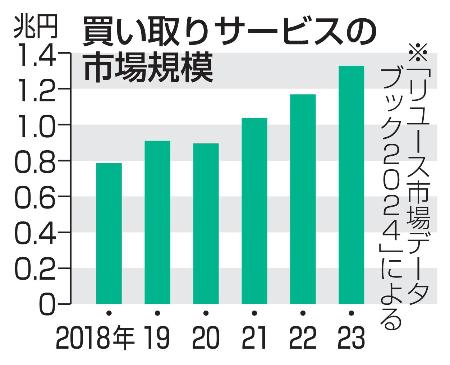 買い取りサービスは消費者のエコ志向や資源活用の意識の高まりを背景に市場規模が拡大。「リユース市場データブック2024」によると、2018年の7843億円から、23年は1兆3274億円と約1・7倍になった。成長の一方、事業者間の競争激化で違法表示が増える懸念がある。