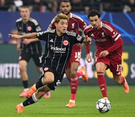 【フランクフルト(ドイツ)共同】サッカーの欧州チャンピオンズリーグ(CL)は22日、各地で1次リーグ第3戦の9試合が行われ、堂安律が後半19分まで出場したアイントラハト・フランクフルト(ドイツ)はリバプール(イングランド)に1―5で完敗した。勝ち点は3のまま。リバプールの遠藤航は出番がなく、チームは勝ち点を6に伸ばした。