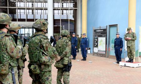 訓練は殺傷能力の高い武器を持つテロリストが上陸し、県警だけでは対処できない事態を想定。パトカーの先導で装甲車など自衛隊車両3台が原発に向かう訓練を、記者団に公開した。