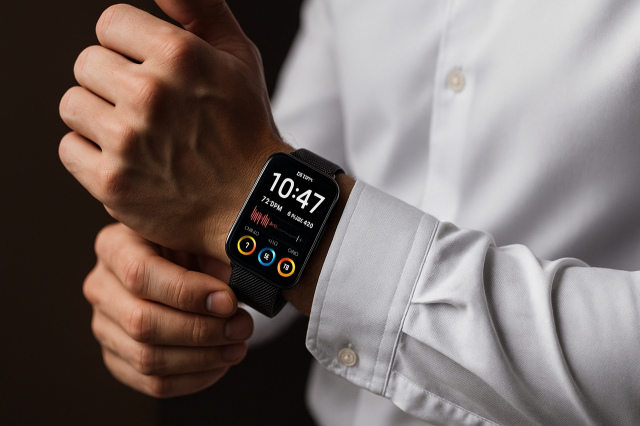 バンドシリーズの上位モデル。1.74インチ大型ディスプレイと高解像度表示により、通知やアプリ操作が快適。GPSを内蔵し、運動時もスマホなしでルート追跡可能。健康モニタリング機能も強化されており、睡眠・ストレス管理まで細かく可視化できる。ファッション性も高く、文字盤デザインのバリエーションが豊富でシーンに合わせたカスタマイズが可能。