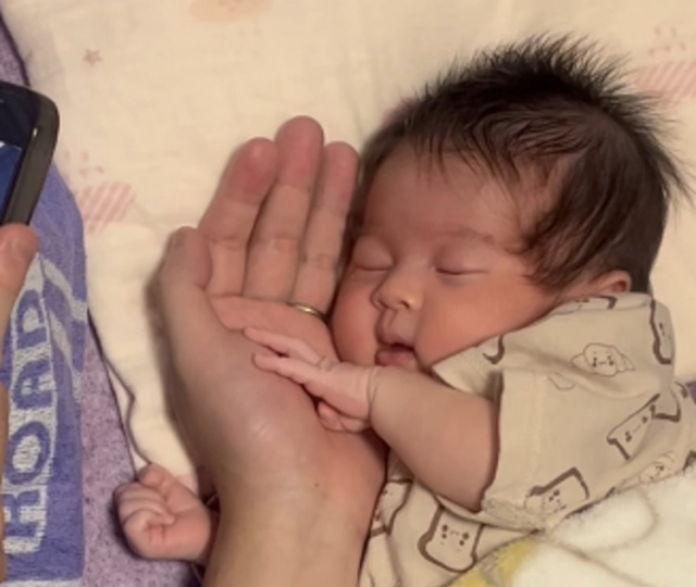 パパの手に頬を付けて眠る赤ちゃんの動画がインスタグラムに投稿され、愛らしい姿に再生回数391万回以上、17万1000「いいね!」が付く話題となっている(21日午前10時時点)。