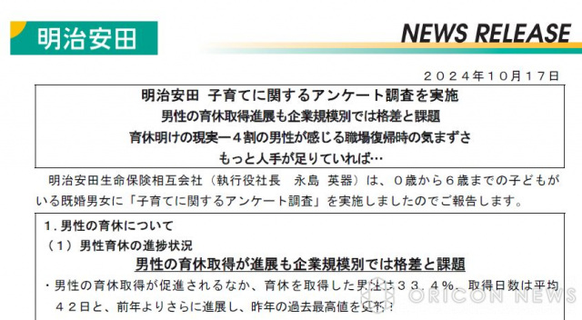 明治安田生命保険相互会社は17日、子育てに関するアンケート調査結果を発表。「イクメン」という言葉は浸透したものの、育児の実態は収入差や職場環境で女性に偏っているとした調査結果を報告した…