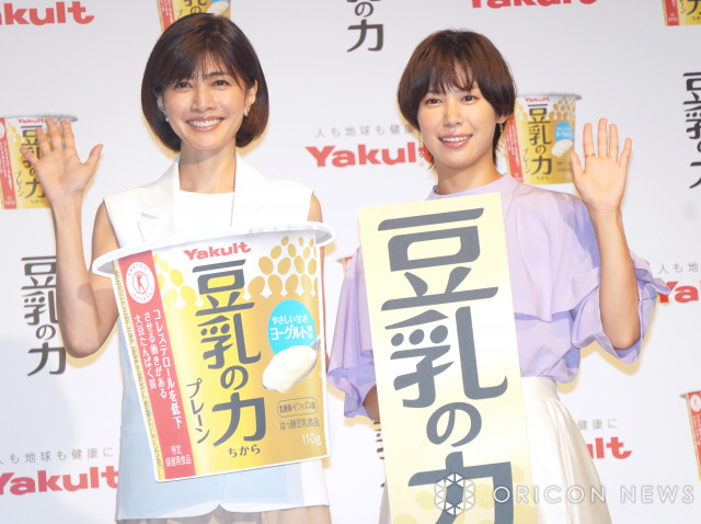 俳優の内田有紀とフェンシング・宮脇花綸選手が3日、都内で行われたヤクルト「豆乳の力」商品説明会&CM発表会に登壇した。初対面の2人だが内田は学生時代にフェンシングをやっていたこともあり…