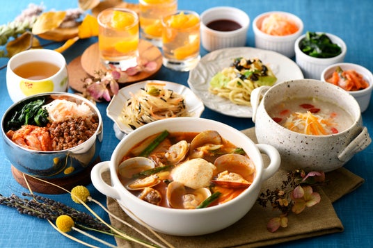 とろける豆腐と旨辛スープがたまらない、体の芯から温まる『純豆腐(スンドゥブ)』や、鶏のうまみを感じる優しい味わいで心も身体も癒される『参鶏湯(サムゲタン)風スープ』、特製コチュジャンの甘辛ダレで味わう韓国の定番ごはん『ビビンバ』など韓国の愛されグルメが大集結!