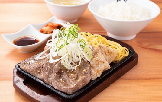 コリっと食感のタンにネギを合わせ、豚カルビも楽しめる満足度の高い定食