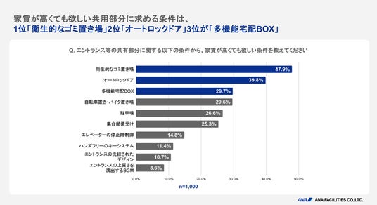 ■家賃が高くても欲しい共用部分に求める条件は、1位「衛生的なゴミ置き場」2位「オートロックドア」3位が「多機能宅配BOX」