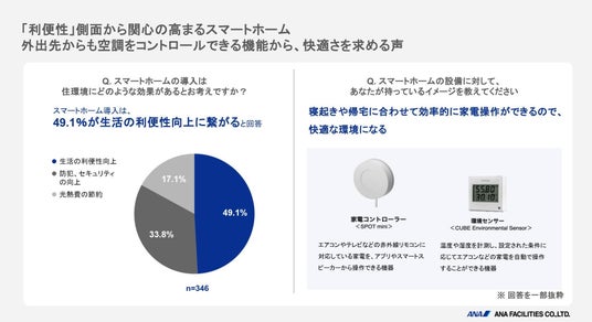 また、先進的な住宅設備として注目されるスマートホーム設備に対するイメージについても尋ねたところ、利便性の向上に期待を寄せる声がありました。