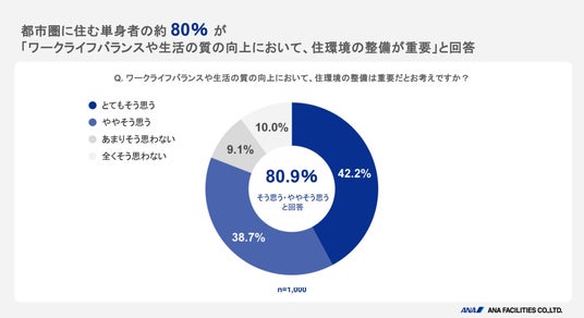 ・都市圏に住む単身者の約80%が、ワークライフバランスや生活の質の向上において、住環境の整備が重要と回答