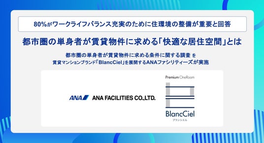 ANAファシリティーズ株式会社(本社:東京都中央区、代表取締役社長:丹治康夫/以下、「ANAファシリティーズ」)は、「いい部屋とは何か」を考えるきっかけとすることを目的に制定された、1月18日「いい部屋の日」を前に、都市圏に住む20~50代の単身者1,000名を対象に「都市圏の単身者が賃貸物件に求める条件に関する調査」を実施しました。