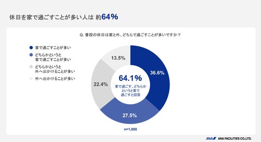 対して休日は、約64%が家で過ごす傾向にありました。家でくつろぐ時間が長いことが、住環境の整備に対する意識の高さにつながっていると推察されます。