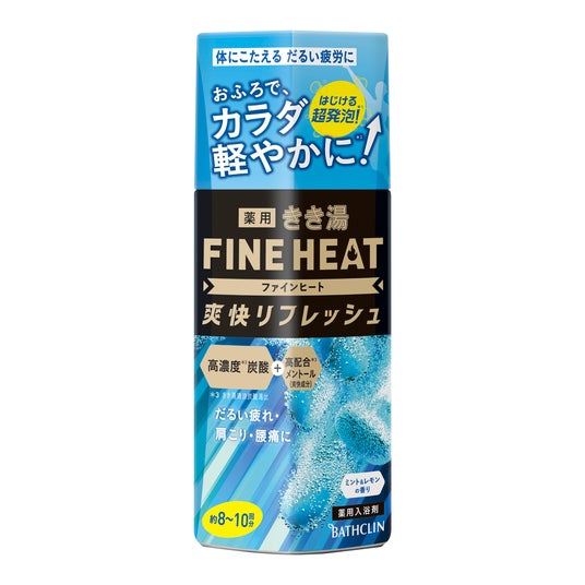 期間中は毎日【きき湯ファインヒート 爽快リフレッシュ】をお楽しみいただけます!温泉科学とメントールを組み合わせた『プレミアム爽快処方』の健康入浴サプリを使用。はじける超発泡ですばやく溶け込み、体にこたえるだるい疲労を爽快にリフレッシュ! ミント&レモンの香りで爽快感もアップ!