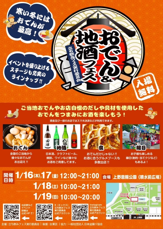 1月16日(木)~19日(日)上野恩賜公園で開催する「おでん&地酒フェス2025」にて募集!