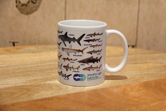 一面サメで埋め尽くされた当館オリジナルのマグカップ。当館で飼育しているサメたちをモチーフにした、サメ好きにはたまらないマグカップとなっています。