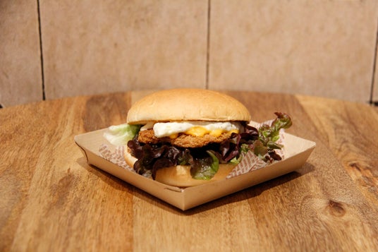あっさりとした味のサメ肉フライに、濃厚なチェダーチーズとタルタルソースが絶妙にマッチした、ボリューム満点のオリジナルバーガーです。