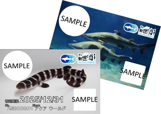 今回の特別企画開催を記念して期間限定の特別デザインの年間パスポートが登場します。大人気のシロワニと今回初展示を行うオーストラリアンマーブルキャットシャークの幼魚の2種類のデザインを期間中はお選びいただけます。